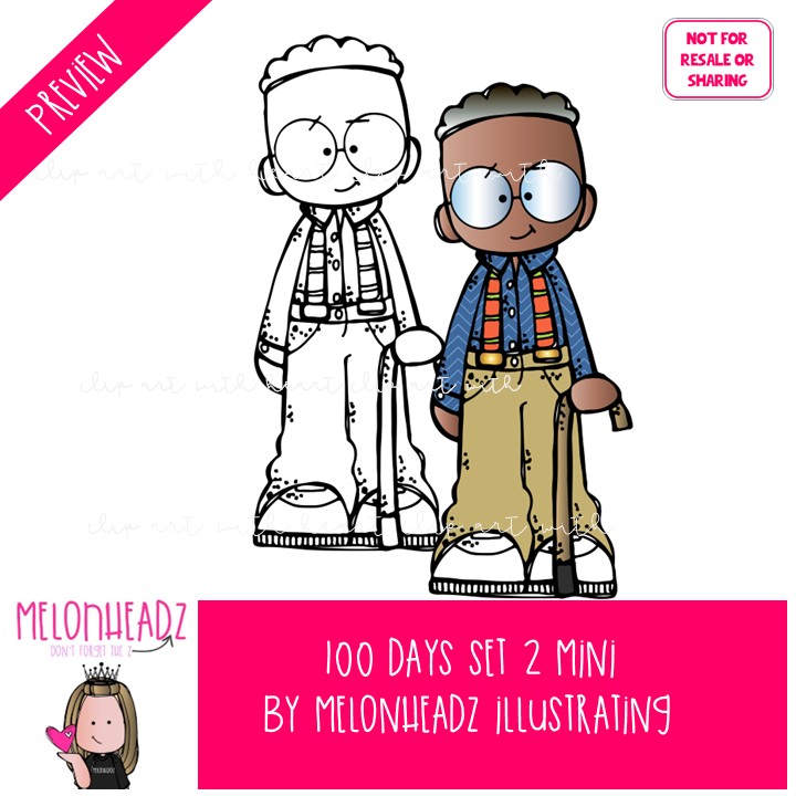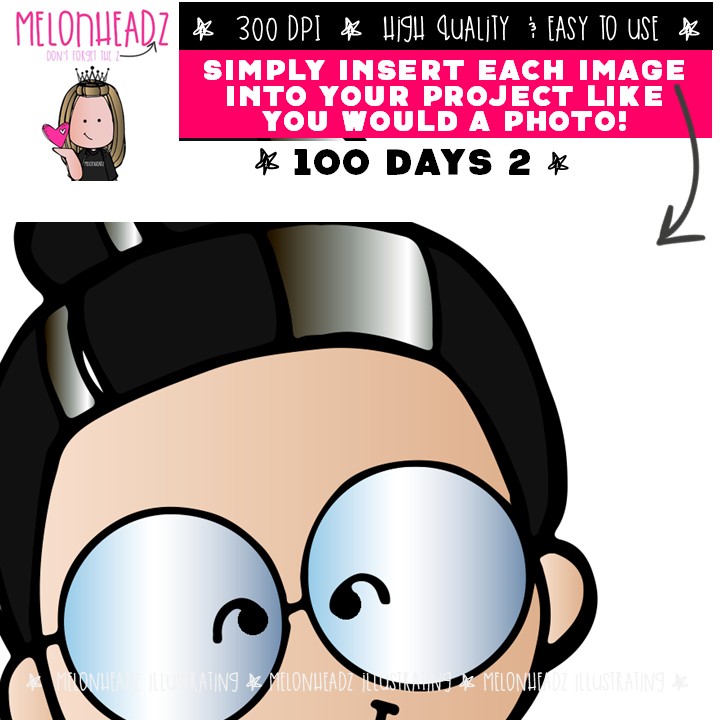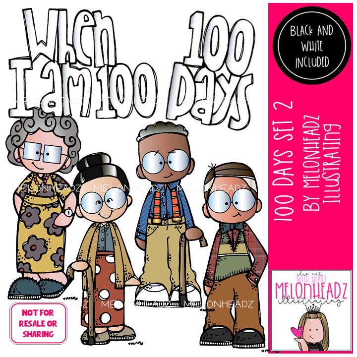 100 Days clip art 2, 100 Days of School clip art Mini: This illustrated set contains all of the clip art images as shown in the preview picture. COLORED and BLACK AND WHITE illustrations included.