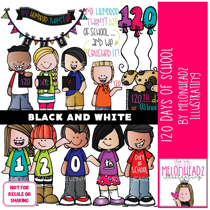 120 Days of School clip art, 120 Days clip art BLACK AND WHITE: This illustrated set contains all of the clip art images as shown in the preview picture. BLACK AND WHITE  illustrations included.