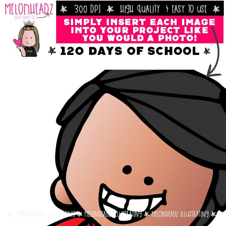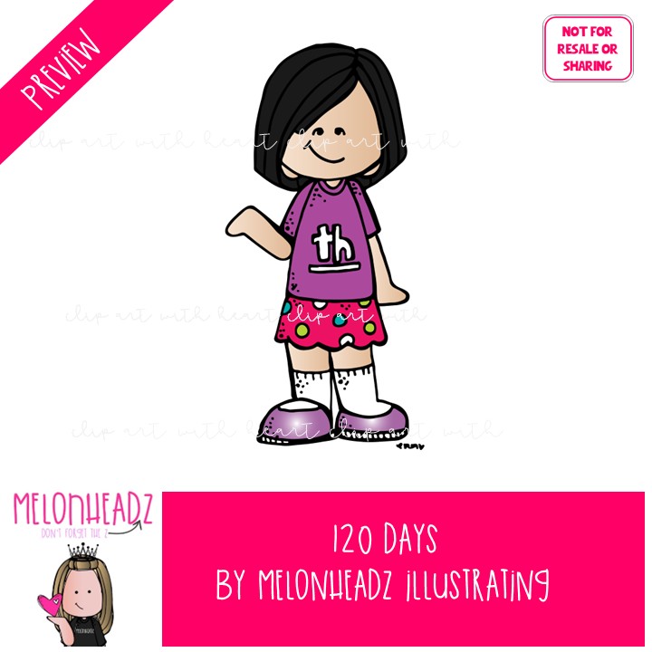 120 Days of School clip art, 120 Days clip art COLORED Version: This illustrated set contains all of the clip art images as shown in the preview picture. COLORED illustrations only.