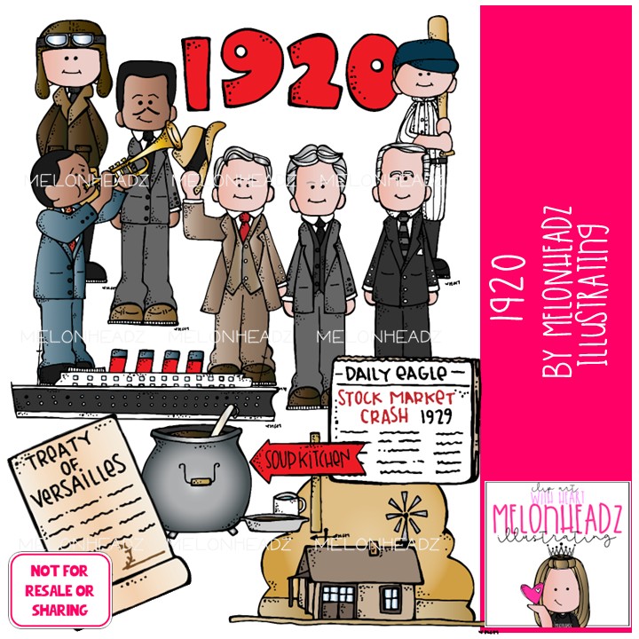 1920 clip art, Lusitania clip art, Historical Figures clip art COLORED Version: This illustrated set contains all of the clip art images as shown in the preview picture. COLORED illustrations only.