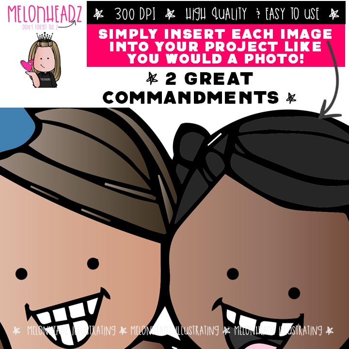 2 Great Commandments clip art, Love thy neighbor clip art, Love God clipart Mini:This illustrated set contains all of the clip art images as shown in the preview picture. COLORED and BLACK AND WHITE illustrations included.