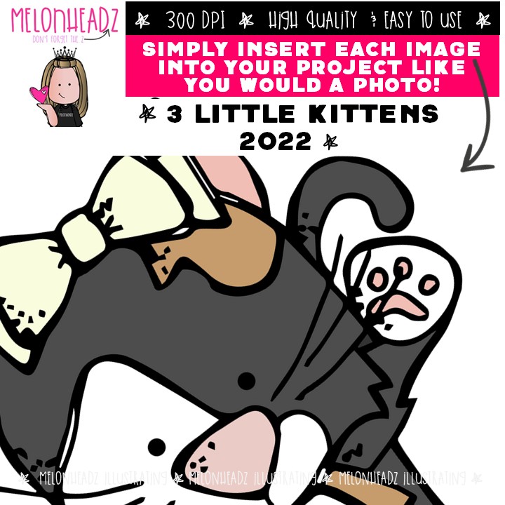 3 Little Kittens clip art 2022, Literature clip art, Fairy Tale clip art COMBO PACK: This illustrated set contains all of the clip art images as shown in the preview picture. COLORED and BLACK AND WHITE illustrations included.