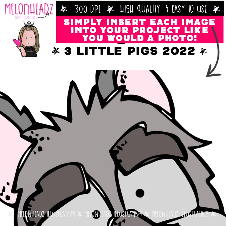 3 Little Pigs clip art 2022, Literature clip art, Fairy Tale clip art COLORED Version: This illustrated set contains all of the clip art images as shown in the preview picture. COLORED  illustrations included.