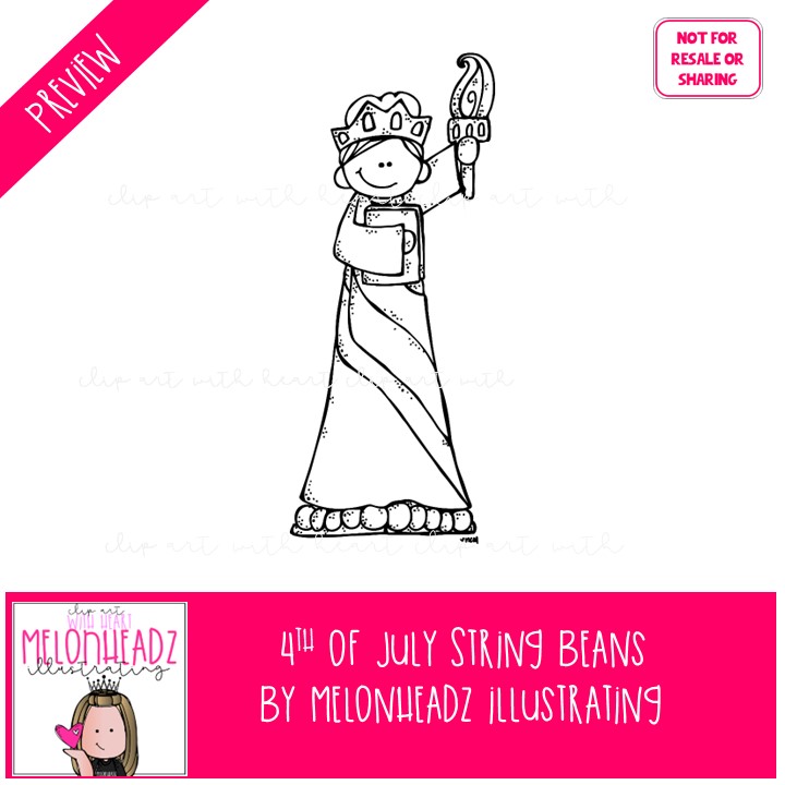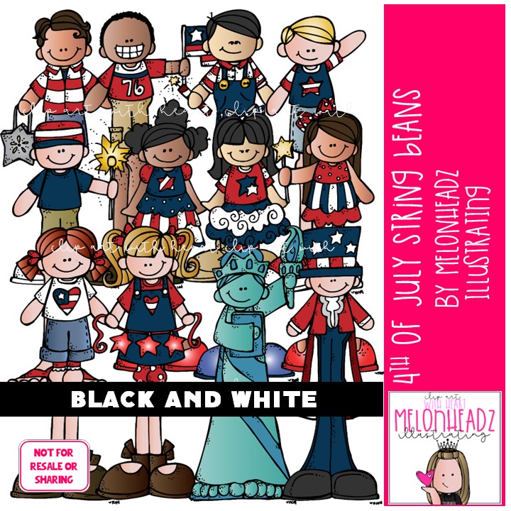 4th of July clip art String Beanz, Independence Day clip art, patriotic clip art BLACK AND WHITE: This illustrated set contains all of the clip art images as shown in the preview picture. BLACK AND WHITE illustrations included.