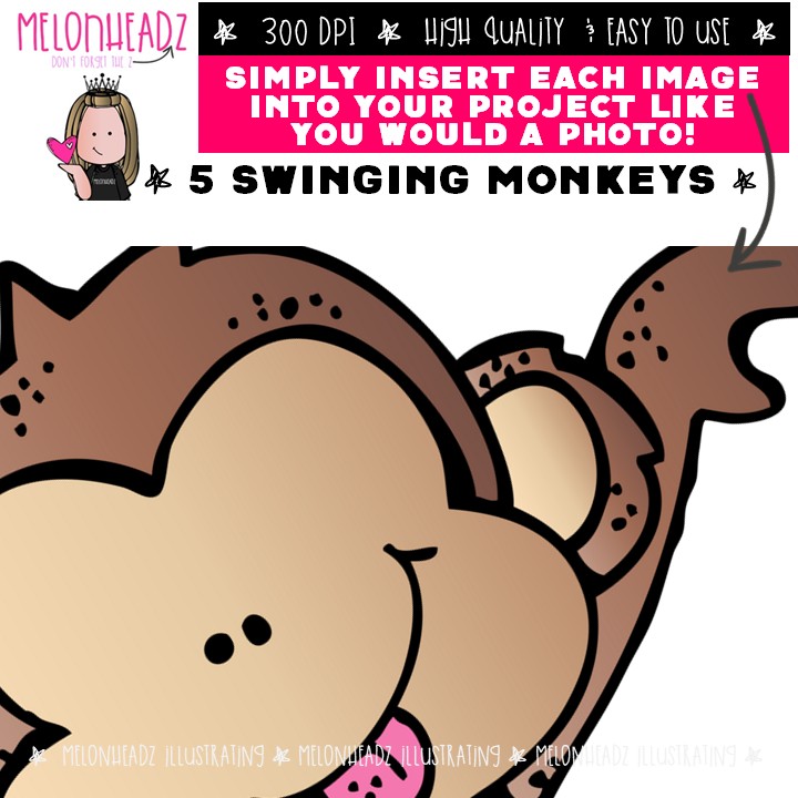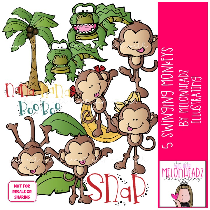5 Swinging Monkeys clip art, Literature clip art, Book Companion clip art COLORED: This illustrated set contains all of the clip art images as shown in the preview picture. COLORED illustrations only.