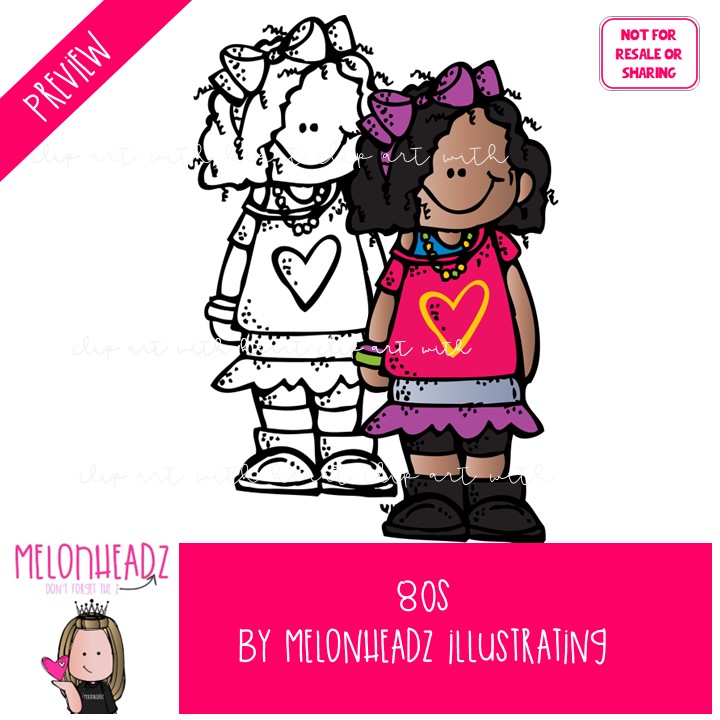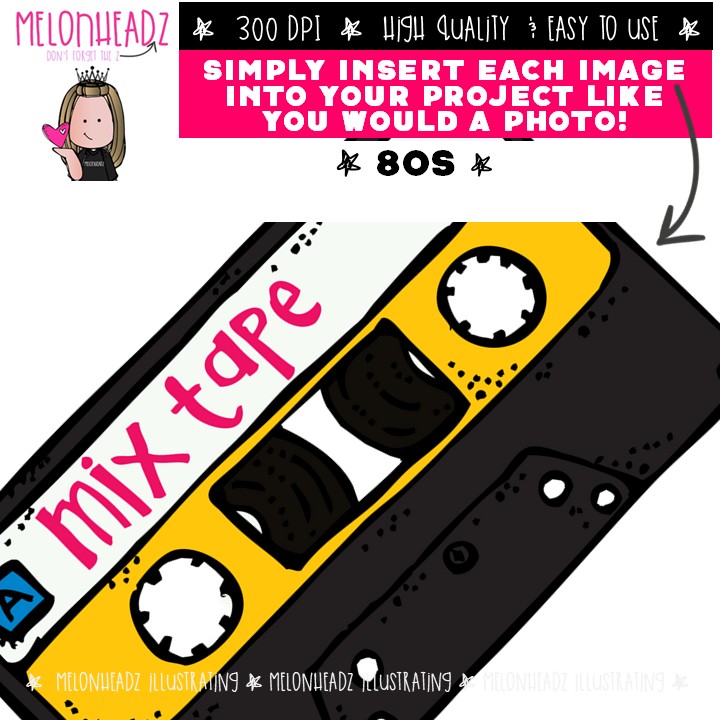 80s clip art, 1980 clip art COMBO PACK: This illustrated set contains all of the clip art images as shown in the preview picture. COLORED, LINE ART and BLACK AND WHITE illustrations included.