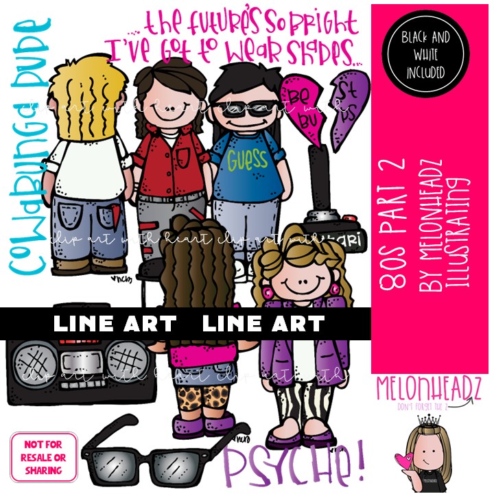 80s clip art 1980 clip art Part 2 LINE ART and BLACK AND WHITE: This illustrated set contains all of the clip art images as shown in the preview picture. LINE ART and BLACK AND WHITE illustrations included.