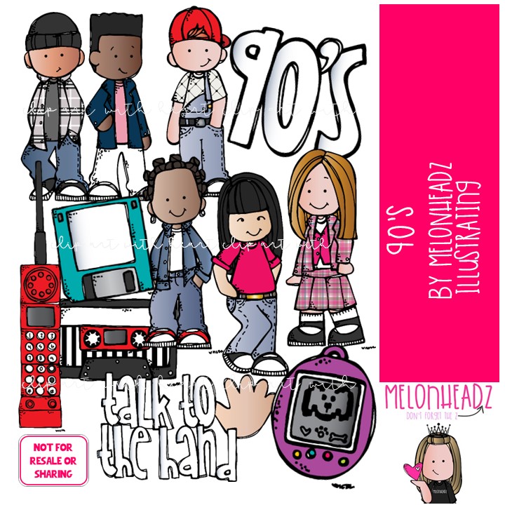 90s clip ar,t 1990 fashion clip art COLORED Version: This illustrated set contains all of the clip art images as shown in the preview picture. COLORED illustrations included.
