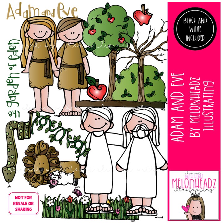Adam and Eve clip art, Bible clip art COMBO PACK: This illustrated set contains all of the clip art images as shown in the preview picture. COLORED and BLACK AND WHITE illustrations included.