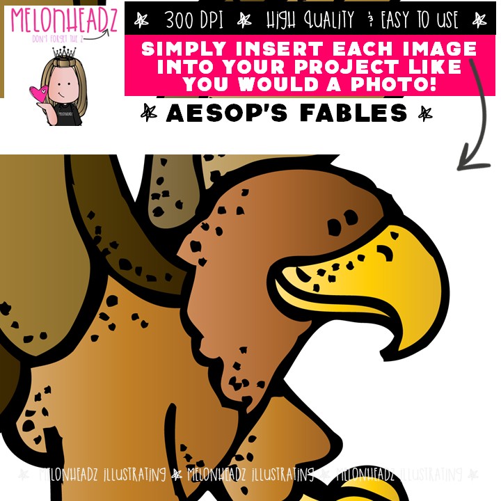 Aesop’s fables clip art, Aesopica clip art COLORED Version: This illustrated set contains all of the clip art images as shown in the preview picture. COLORED illustrations only.