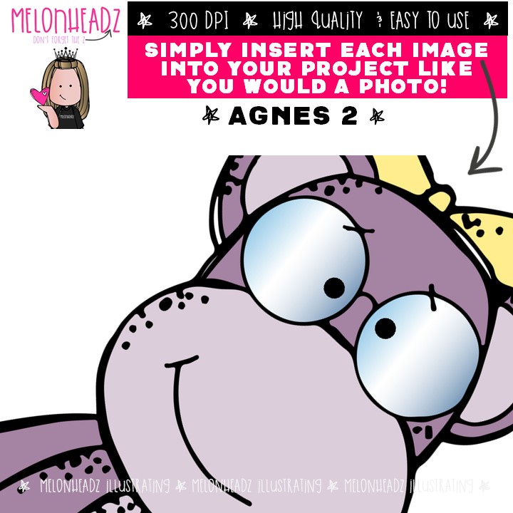 Hippo clip art 2, Agnes clip art Mini: This illustrated set contains all of the clip art images as shown in the preview picture. COLORED and BLACK AND WHITE illustrations included.