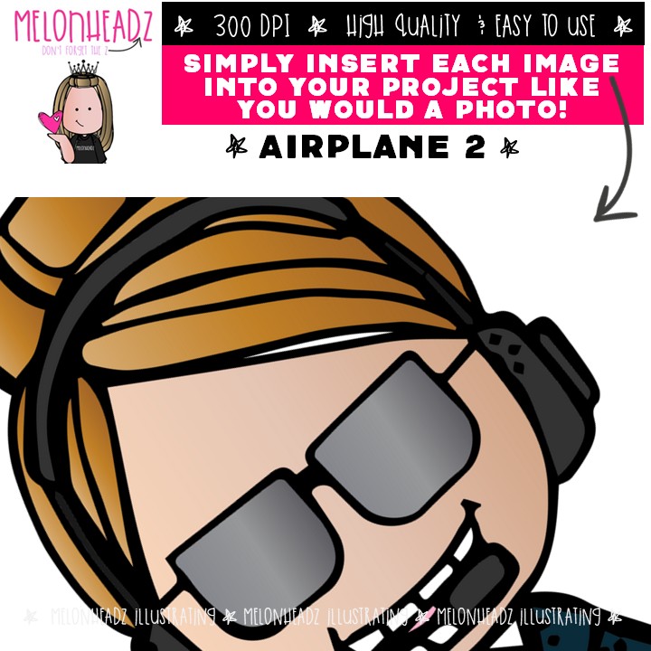 Airplane clip art 2, pilot clip art, flight attendant clip art Mini: This illustrated set contains all of the clip art images as shown in the preview picture. COLORED  and BLACK AND WHITE illustrations included.