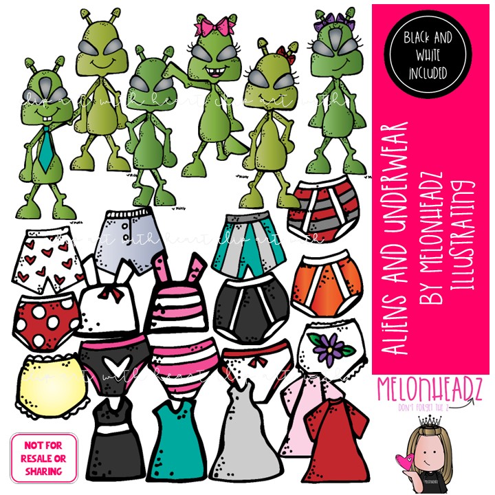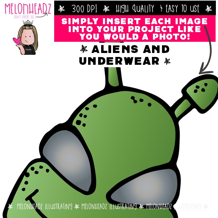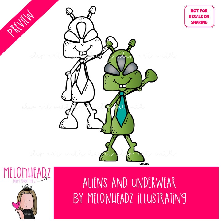 Aliens and Underwear clip art, Space clip art COMBO PACK: This illustrated set contains all of the clip art images as shown in the preview picture. COLORED and BLACK AND WHITE illustrations included.