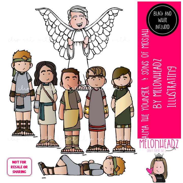 Alma the Younger & Sons of Mosiah clip art, Book of Mormon, LDS clip art MINI: This illustrated set contains all of the clip art images as shown in the preview picture. COLORED and BLACK AND WHITE illustrations included.