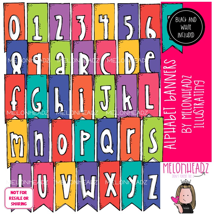 Alphabet Banners clip art, Letters clip art, Alphabet flag clip art COMBO PACK: This illustrated set contains all of the clip art images as shown in the preview picture. COLORED and BLACK AND WHITE illustrations included.