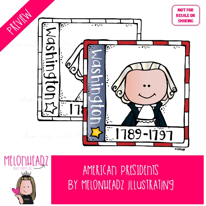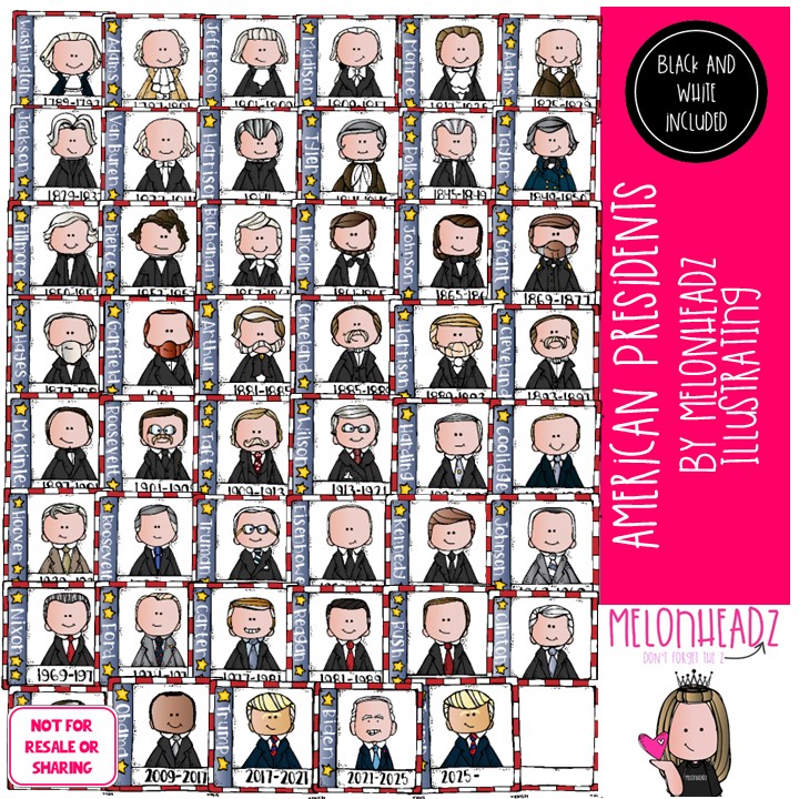 American Presidents clip art, Historical Figures clip art COMBO PACK: This illustrated set contains all of the clip art images as shown in the preview picture. COLORED and BLACK AND WHITE illustrations included.