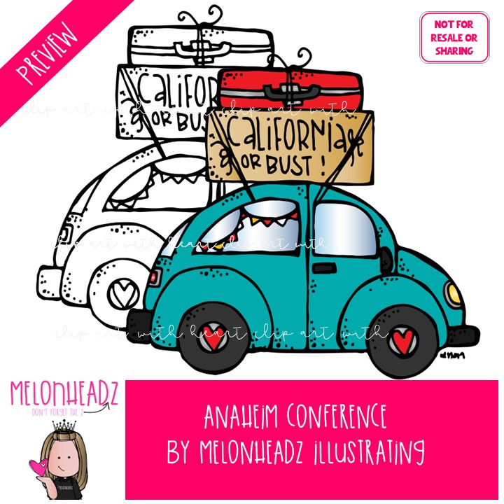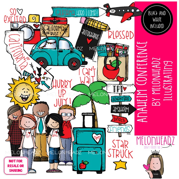 TPT Conference clip art, Anaheim California clip art COMBO PACK: This illustrated set contains all of the clip art images as shown in the preview picture. COLORED and BLACK AND WHITE illustrations included.