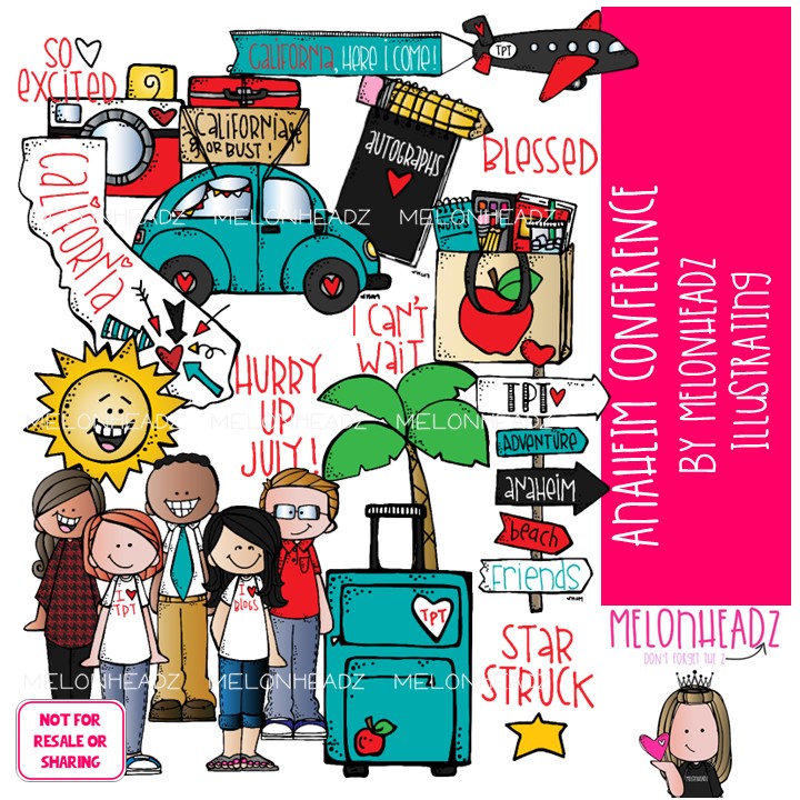TPT Conference clip art, Anaheim California clip art COLORED Version: This illustrated set contains all of the clip art images as shown in the preview picture. COLORED illustrations included.