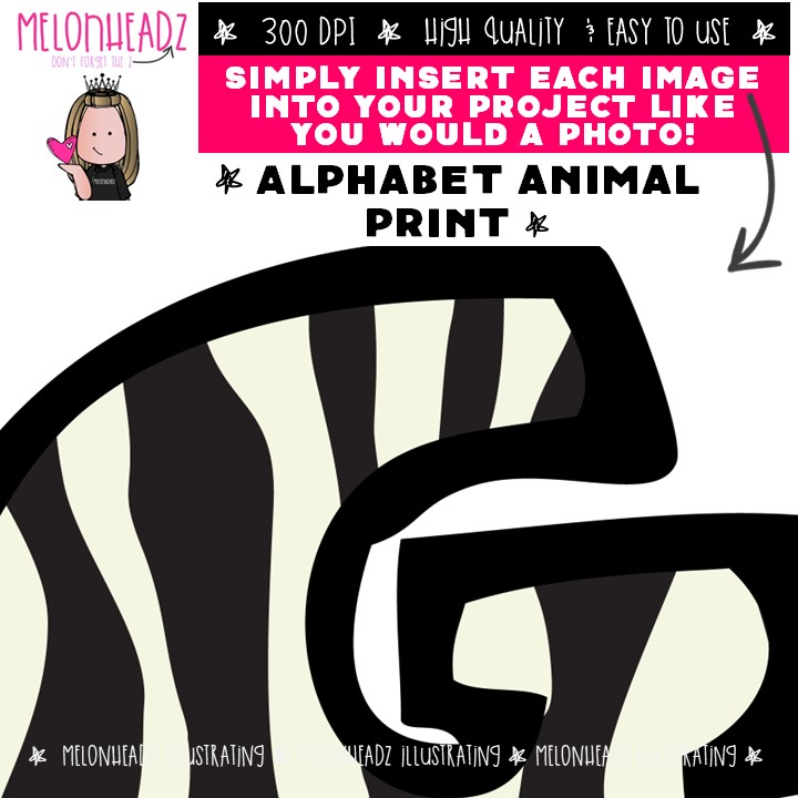 Animal Print Alphabet clip art, ABCs clip art, Letters clip art COLORED Version: This illustrated set contains all of the clip art images as shown in the preview picture. COLORED illustrations only.