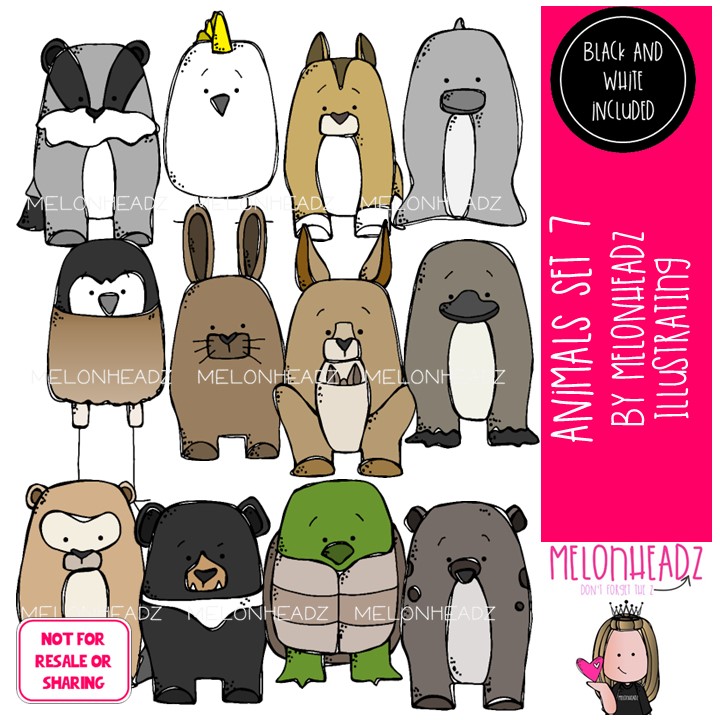 Animals clip art set 7 COLORED Version: This illustrated set contains all of the clip art images as shown in the preview picture.  COLORED  illustrations only.