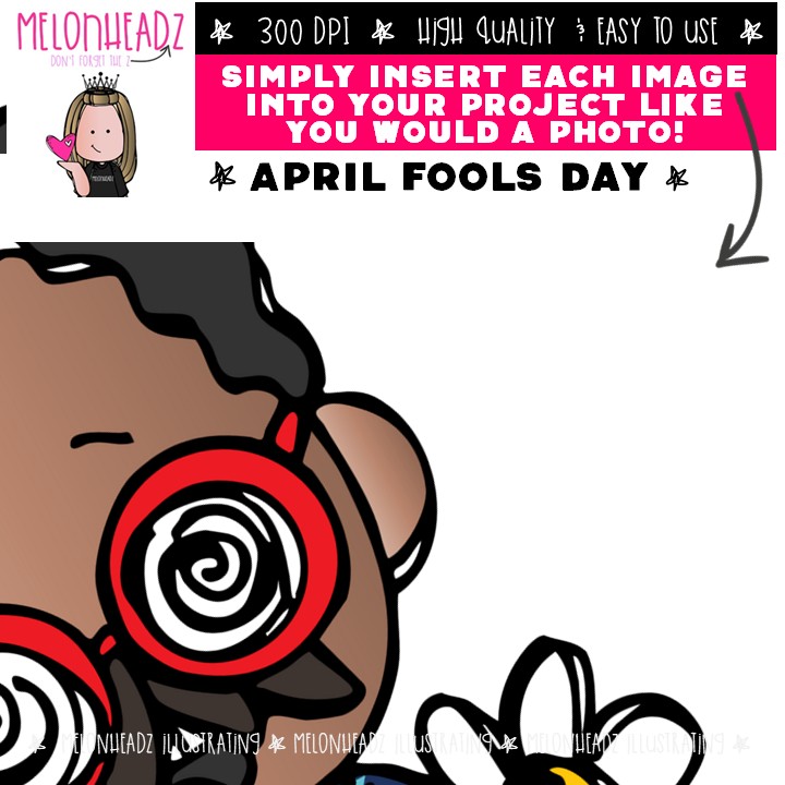 April Fools day clip art, Joke clip art, Prank clip art Mini: This illustrated set contains all of the clip art images as shown in the preview picture. COLORED and BLACK AND WHITE illustrations included.