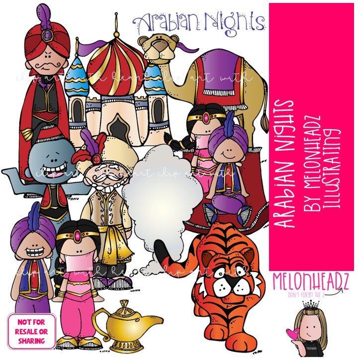 Arabian Nights clip art, Aladdin clip art, Literature clip art COLORED Version: This illustrated set contains all of the clip art images as shown in the preview picture. COLORED illustrations included.