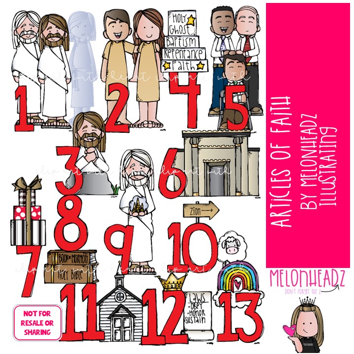 Articles of Faith clip art, LDS clip art, Book of Mormon clip art: This illustrated set contains all of the clip art images as shown in the preview picture. COLORED illustrations included.