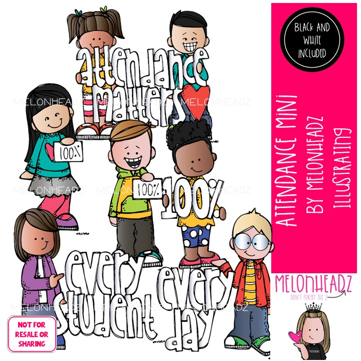 Attendance clip art, Go to School clip art Mini: This illustrated set contains all of the clip art images as shown in the preview picture. COLORED and BLACK AND WHITE illustrations included.