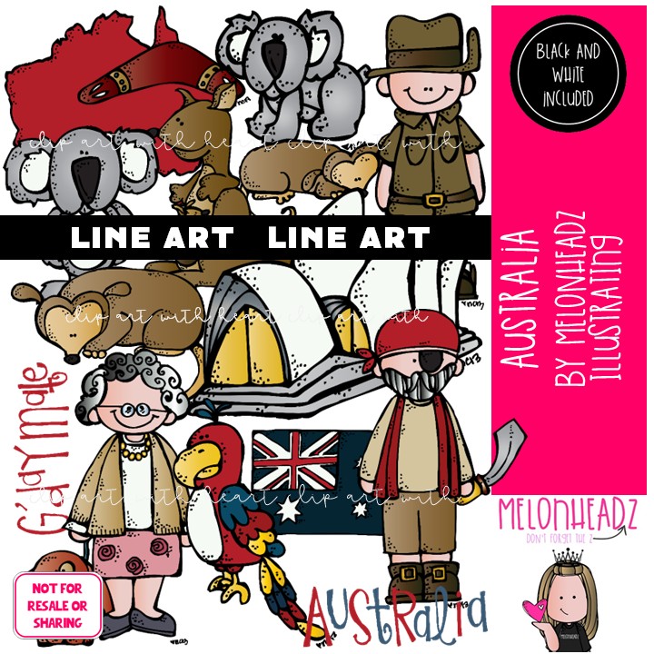 Australia clip art, Koala clip art, Flag clip art LINE ART and BLACK AND WHITE: This illustrated set contains all of the clip art images as shown in the preview picture. LINE ART illustrations included.