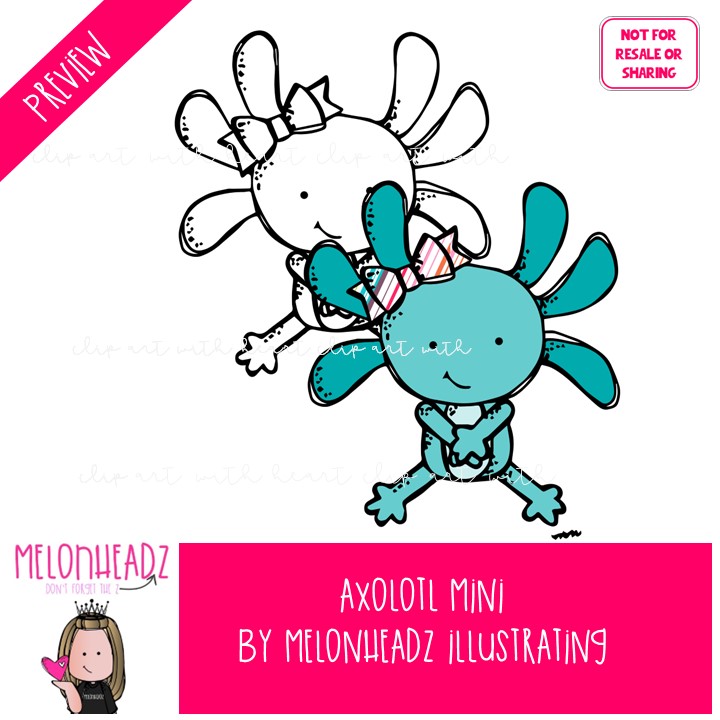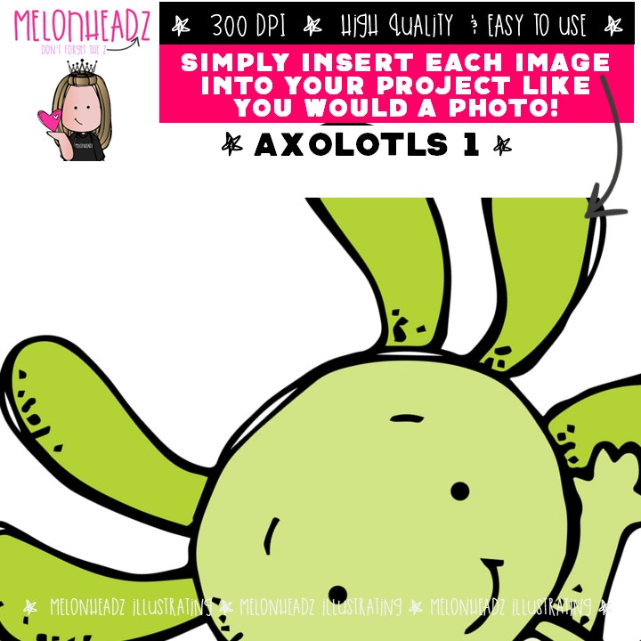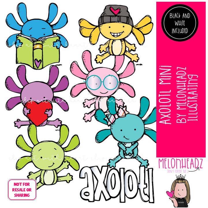 Axolotl clip art 1, Amphibian clip art MiniThis illustrated set contains all of the clip art images as shown in the preview picture. COLORED and BLACK AND WHITE illustrations included.