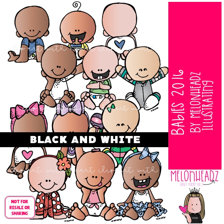 Babies clip art, Family clip art, Infant clip art BLACK AND WHITE: This illustrated set contains all of the clip art images as shown in the preview picture. BLACK AND WHITE  illustrations included.
