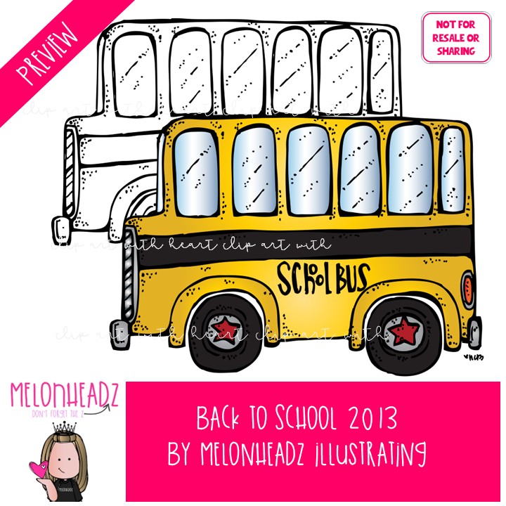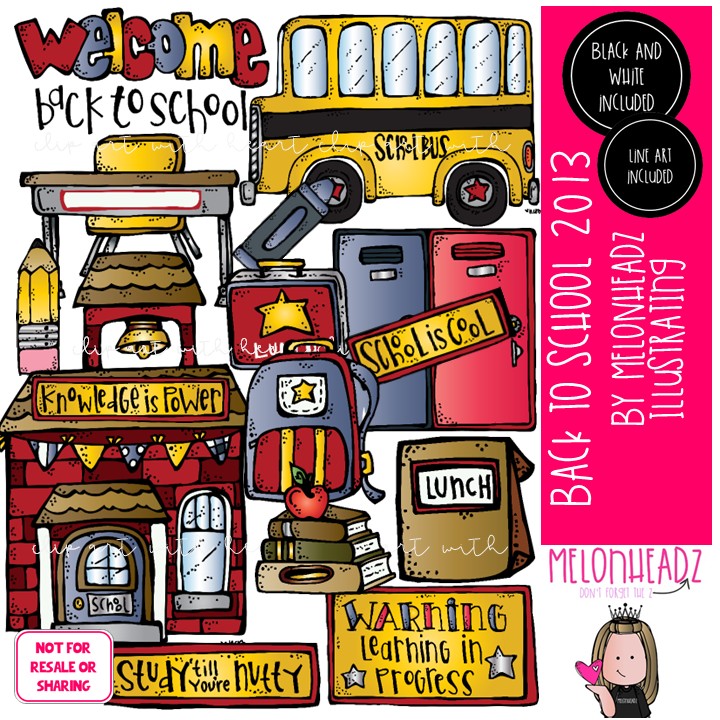 Back to School clip art 2013, School Bus clip art COMBO PACK: This illustrated set contains all of the clip art images as shown in the preview picture. COLORED and LINE ART illustrations included.
