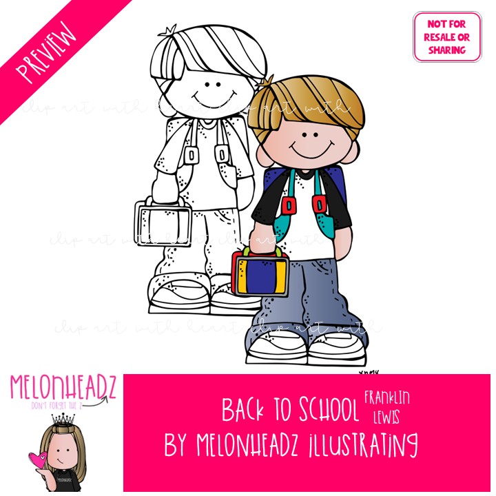 Back to School clip art, Franklin Lewis clip art Mini: This illustrated set contains all of the clip art images as shown in the preview picture. COLORED and BLACK AND WHITE illustrations included.