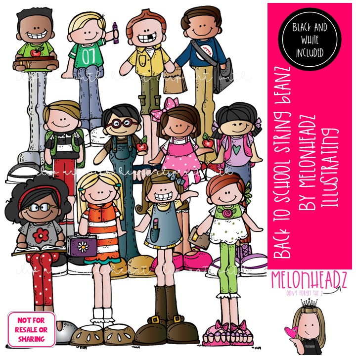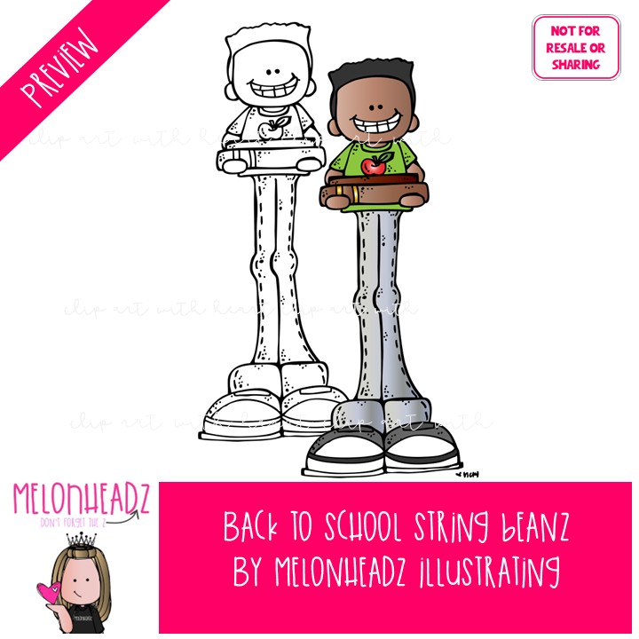 Back to School clip art, String Beanz COMBO PACK: This illustrated set contains all of the clip art images as shown in the preview picture. COLORED and BLACK AND WHITE illustrations included.