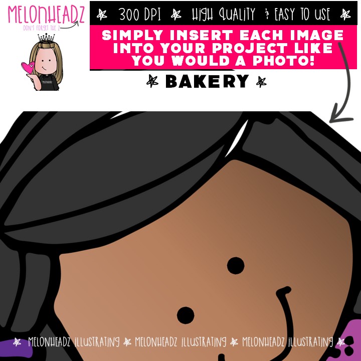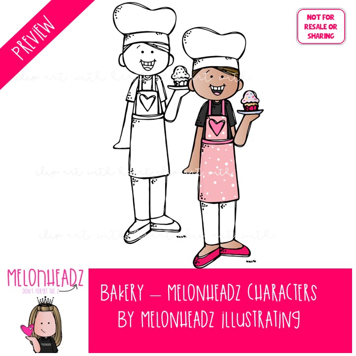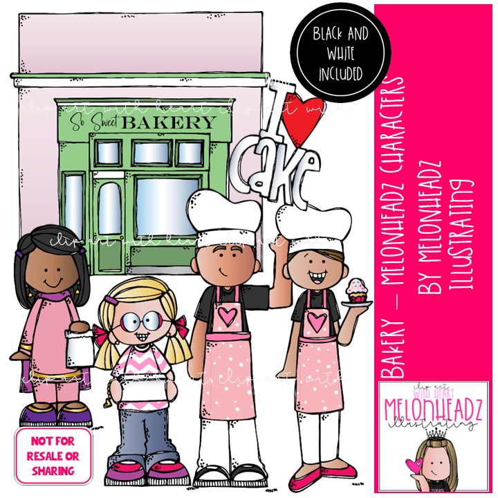 Bakery clip art, Baking clip art, Melonheadz Characters clip art Mini: This illustrated set contains all of the clip art images as shown in the preview picture. COLORED and BLACK AND WHITE  illustrations included.