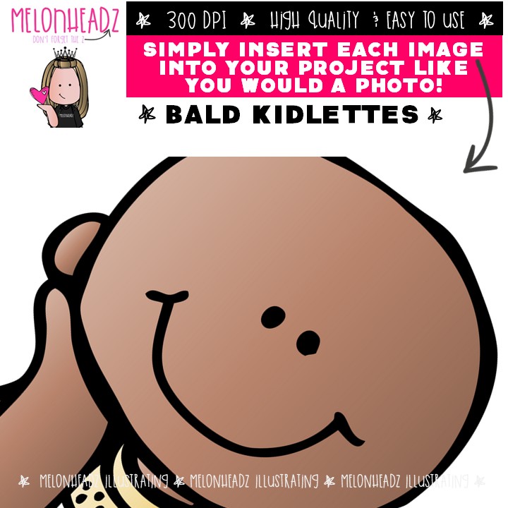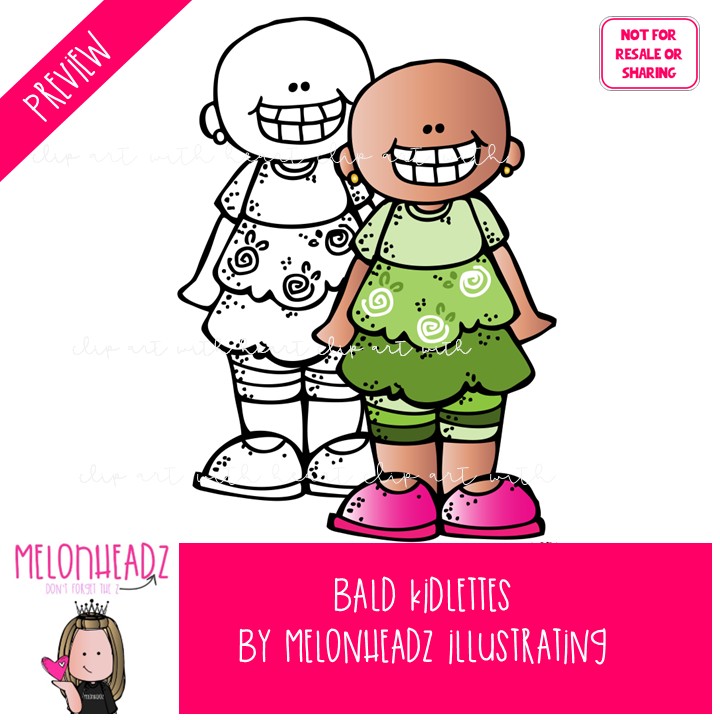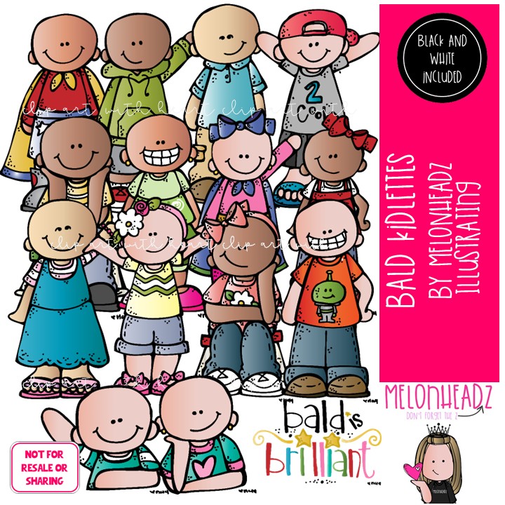 Bald Kidlettes clip art, Bald Kids clip art, Alopecia clip art COMBO PACK: This illustrated set contains all of the clip art images as shown in the preview picture. COLORED and BLACK AND WHITE illustrations included.