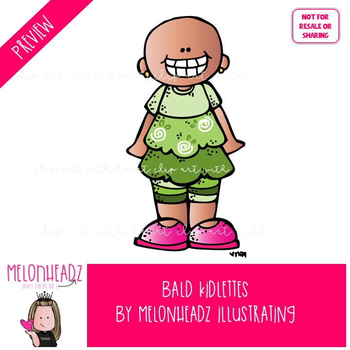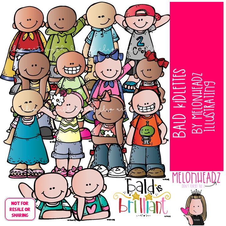 Bald Kidlettes clip art, Bald Kids clip art, Alopecia clip art COLORED Version