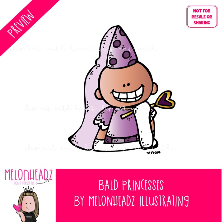 Bald Princesses clip art, Bald Kidlettes clip art, Alopecia clip art COLORED Version: This illustrated set contains all of the clip art images as shown in the preview picture. COLORED  illustrations included.