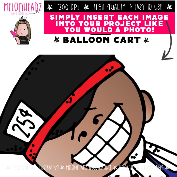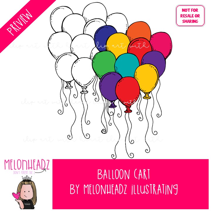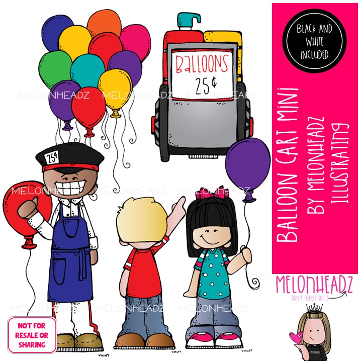 Balloon Cart clip art, Vendor clip art Mini: This illustrated set contains all of the clip art images as shown in the preview picture. COLORED and BLACK AND WHITE  illustrations included.