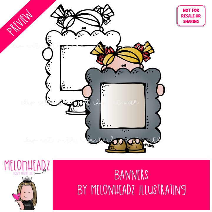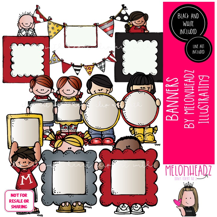 Banners clip art, blank frame, kid COMBO PACK: This illustrated set contains all of the clip art images as shown in the preview picture. COLORED and LINE ART and BLACK AND WHITE illustrations included.