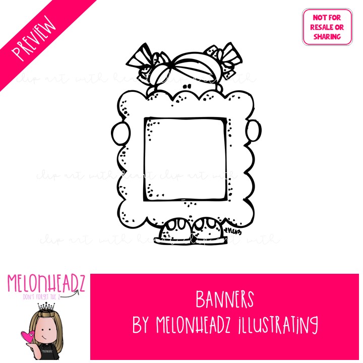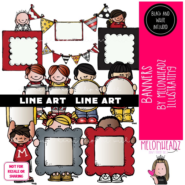 Banners clip art, blank frame, kid LINE ART and BLACK AND WHITE: This illustrated set contains all of the clip art images as shown in the preview picture. LINE ART and BLACK AND WHITE illustrations included.