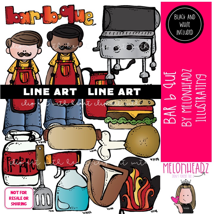 Bar B Que clip art, BBQ, steak, Dad LINE ART and BLACK AND WHITE: This illustrated set contains all of the clip art images as shown in the preview picture. LINE ART illustrations included.