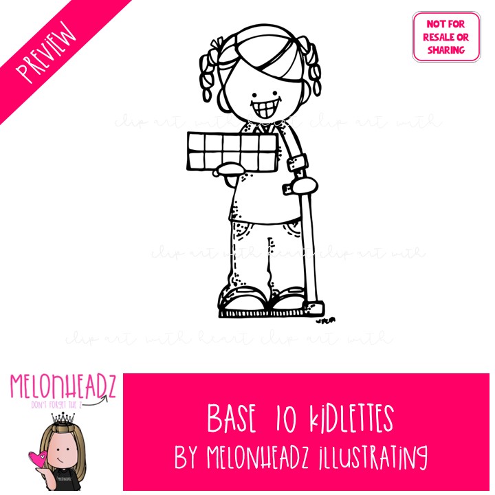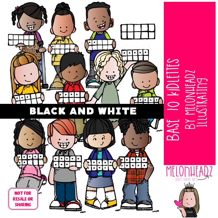 Base Ten Kidlettes clip art, math, blocks BLACK AND WHITE: This illustrated set contains all of the clip art images as shown in the preview picture. BLACK AND WHITE illustrations included.