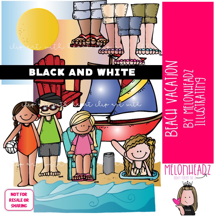Beach Vacation clip art, background, waves BLACK AND WHITE: This illustrated set contains all of the clip art images as shown in the preview picture. BLACK AND WHITE illustrations included.