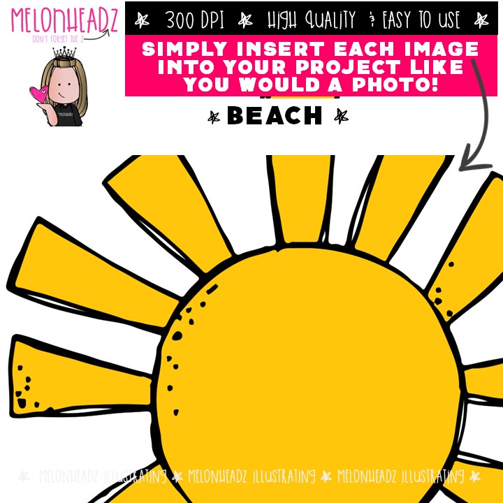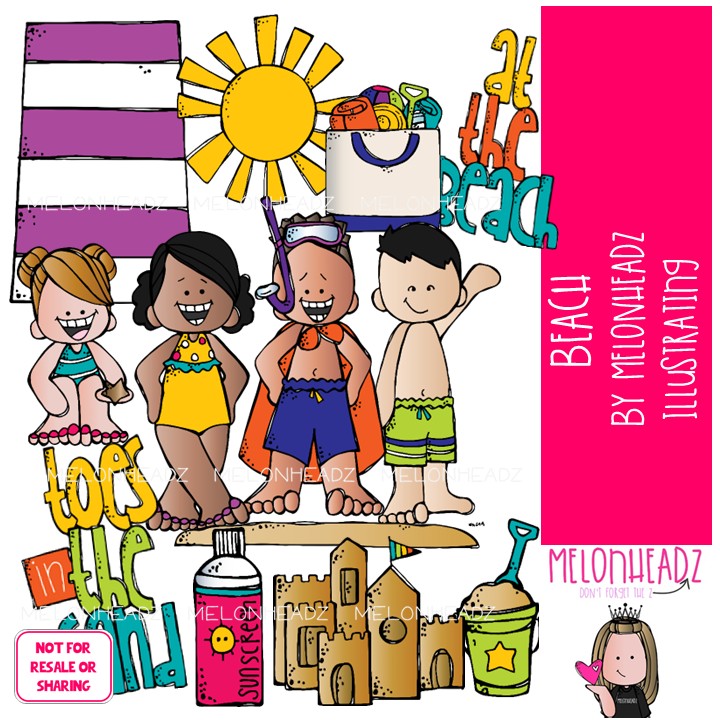 Beach clip art, sand, vacation, COLORED Version: This illustrated set contains all of the clip art images as shown in the preview picture. COLORED illustrations included.