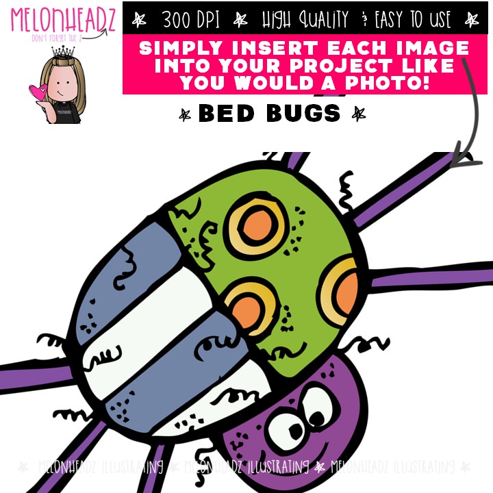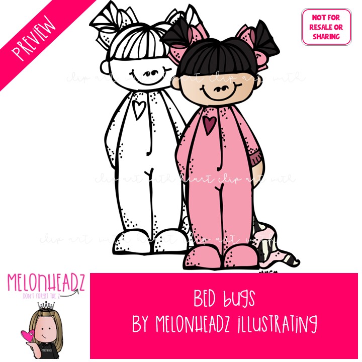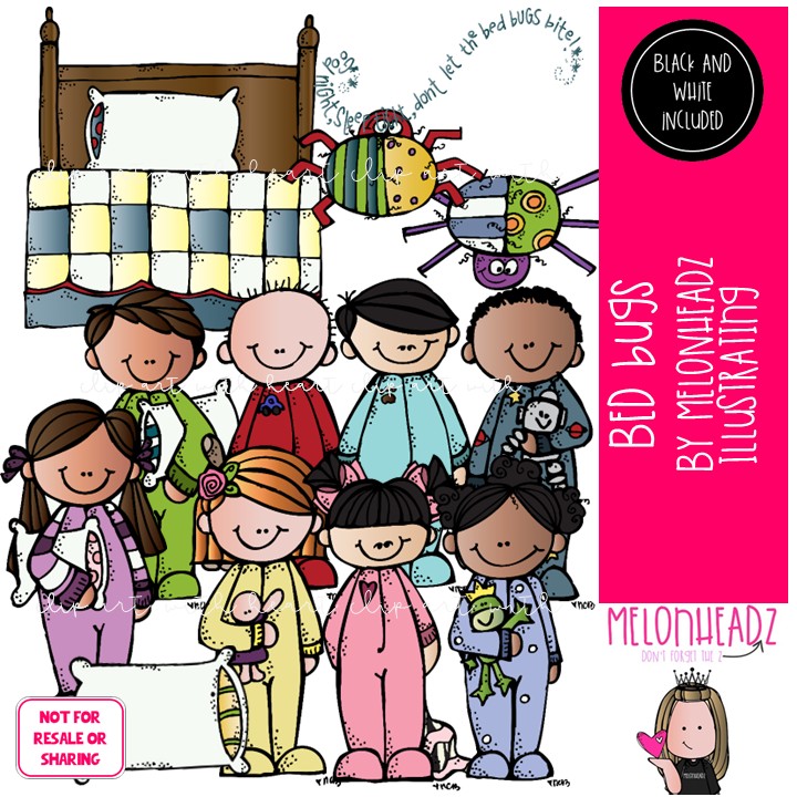Bed Bugs clip art, pillow, pajamas COMBO PACK: This illustrated set contains all of the clip art images as shown in the preview picture. COLORED and BLACK AND WHITE illustrations included.