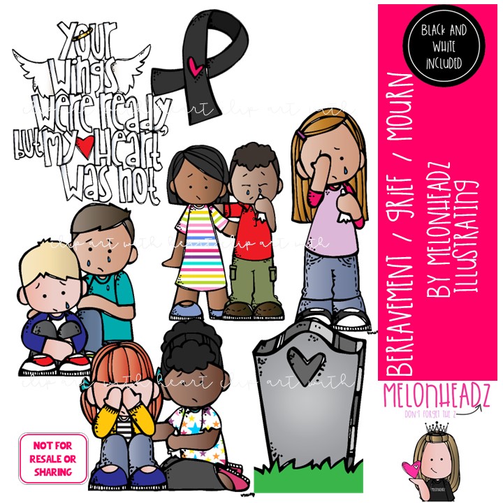 Bereavement clip art, Grief, Death, Mourn MINI: This illustrated set contains all of the clip art images as shown in the preview picture. COLORED and BLACK AND WHITE illustrations included.