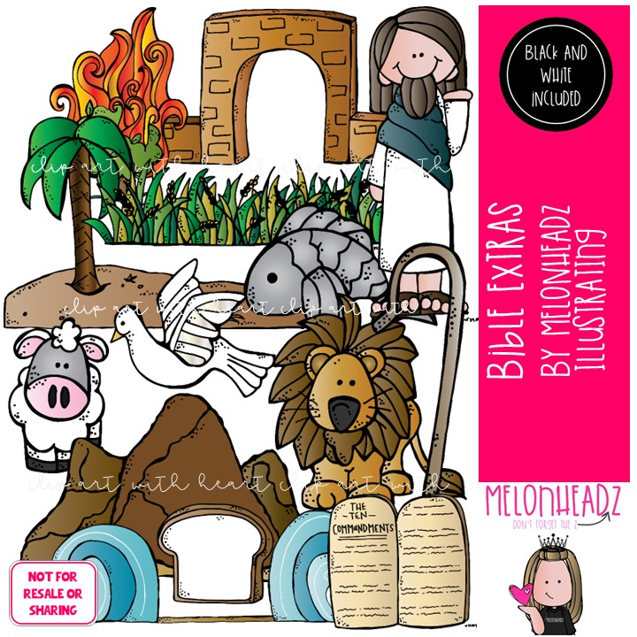 Bible Extras clip art, Jesus, COMBO PACK: This illustrated set contains all of the clip art images as shown in the preview picture. COLORED and BLACK AND WHITE illustrations included.