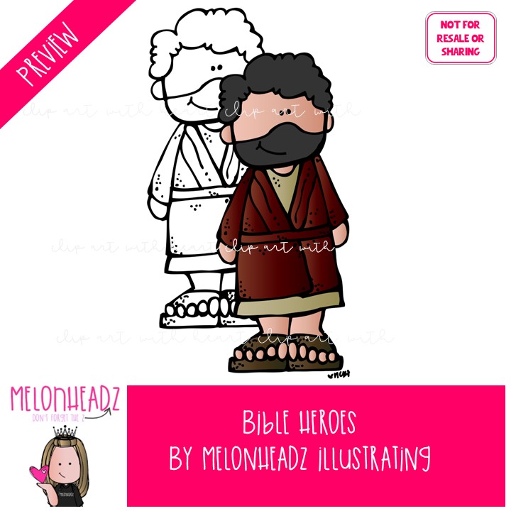 Bible Heroes clip art, Bible Story clip art COMBO PACK: This illustrated set contains all of the clip art images as shown in the preview picture. COLORED and BLACK AND WHITE illustrations included.