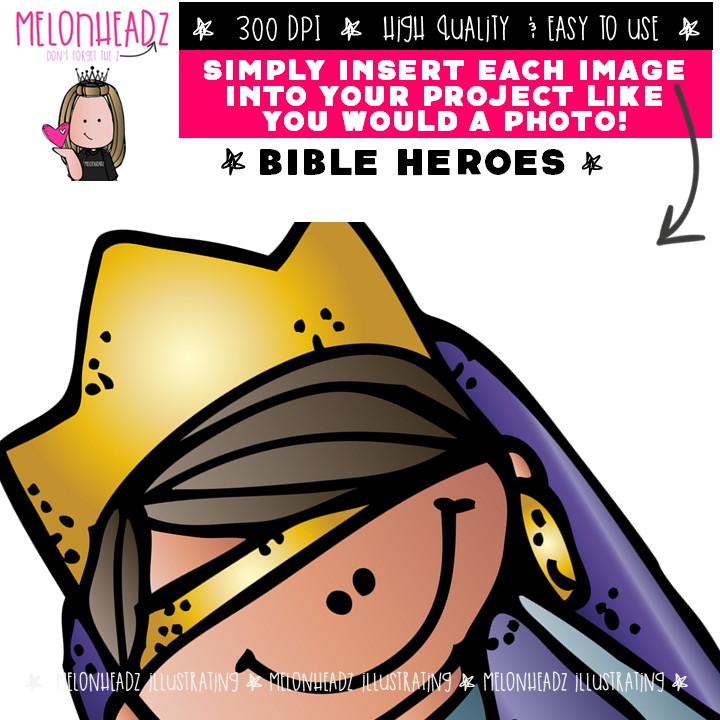 Bible Heroes clip art, Bible Story clip art COLORED Version: This illustrated set contains all of the clip art images as shown in the preview picture. COLORED  illustrations included.